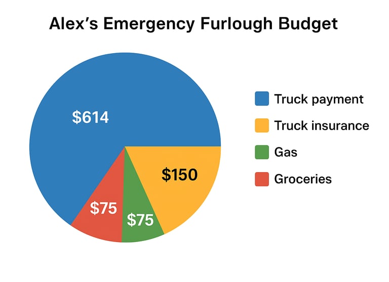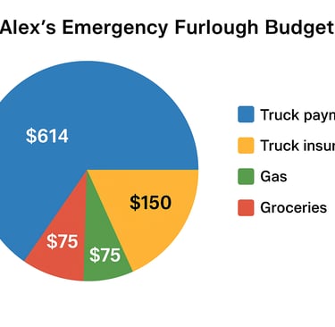 He has decided to spend as little as possible until the furlough ends. The $1000 paycheck he last received still has $125 left after paying for gas and food for two weeks. He has not paid his phone bill, internet, or had any paid social activities.